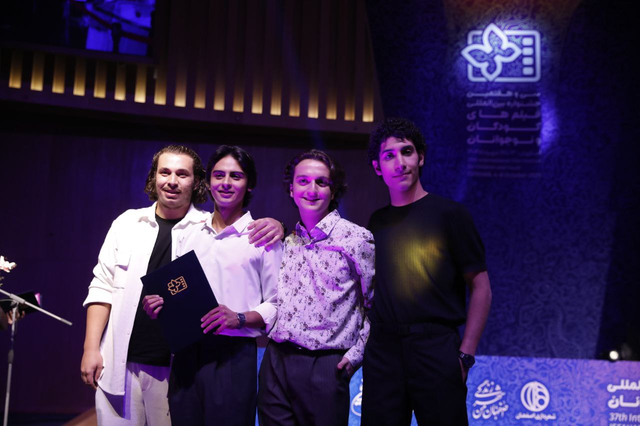 حسین قناعت کارگردان فیلم همراه با بازیگران کودک این اثر برای دریافت پروانه زرین روی صحنه حاضر شد.